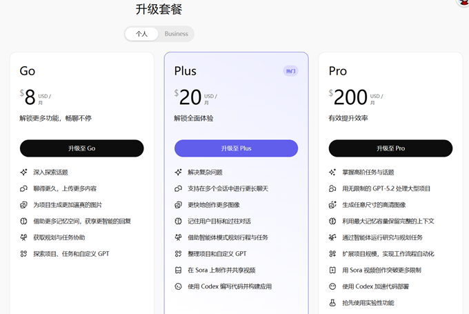 ChatGPT Plus会员充值续费