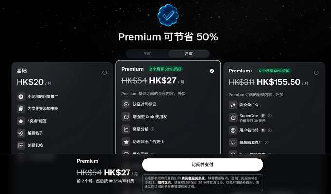 推特X会员订阅层级说明: